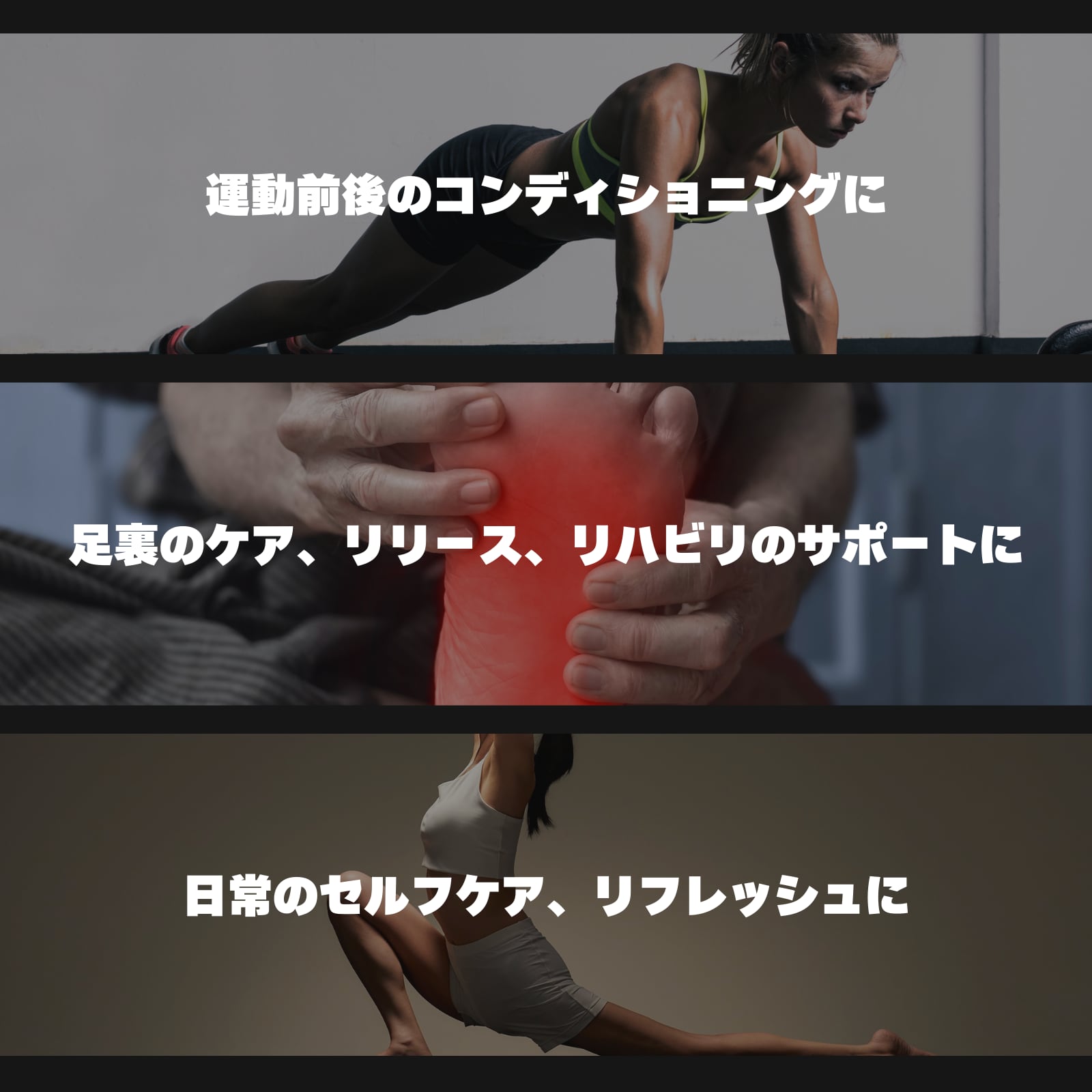 ⑤足裏のケア、リリース、セルフケア、リフレッシュ、運動前後のコンディショニングの使用可能です。
