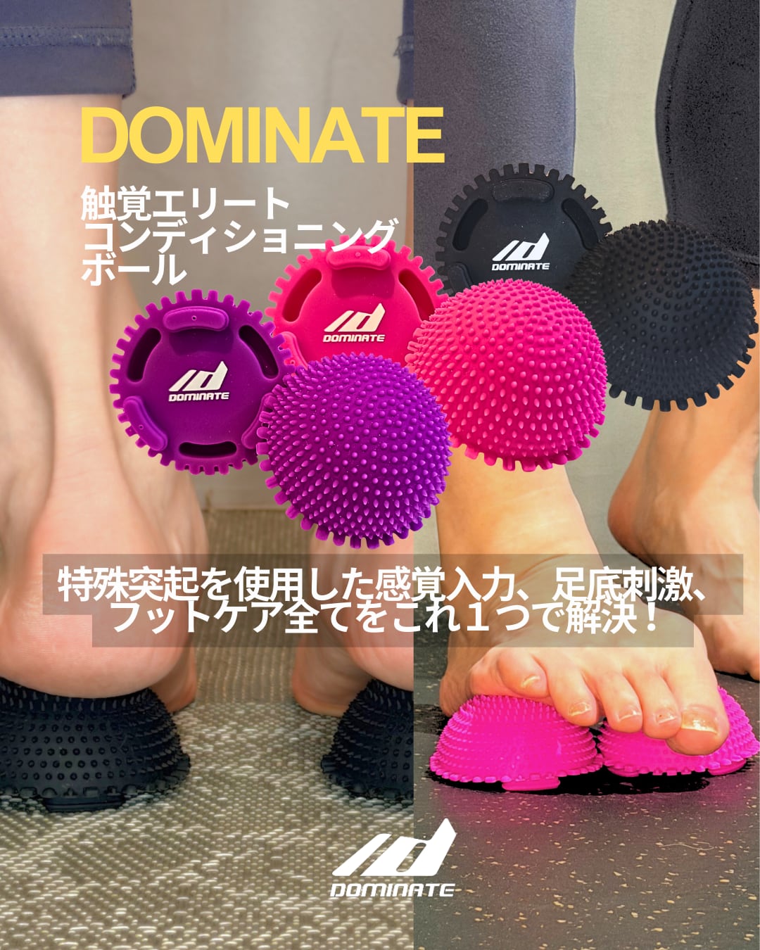 【足裏感覚入力・足底刺激】DOMINATE エリート 触覚コンディショニングボール|多くのプロアスリートに支持される日本DOMINATEブランド|特殊突起コンディショニングボール|個数2個入り(ランダム2色) | DOMINATE